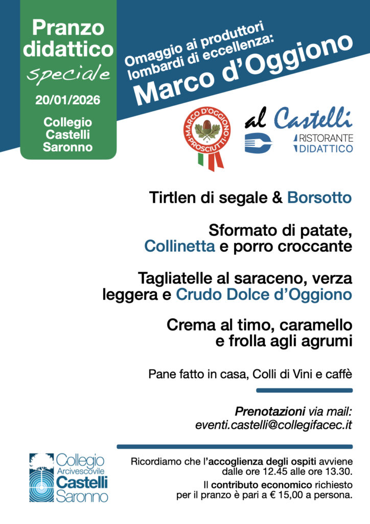 È gradita la prenotazione (segnalando anche eventuali esigenze alimentari) scrivendo una mail a eventi.castelli@collegifacec.it>